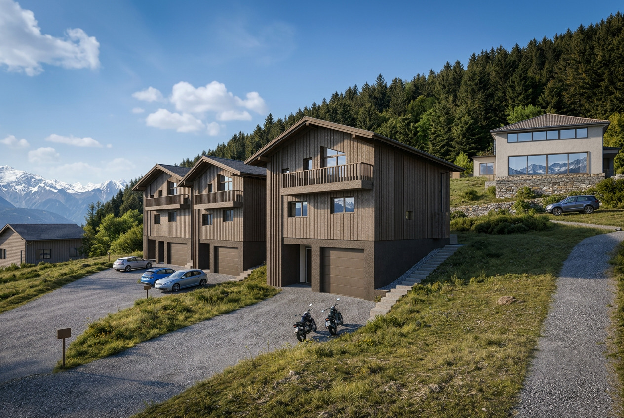 Le projet Les Écrins propose cinq villas individuelles de standing situées sur la Route de la Doëy à Vérossaz. Conçues pour offrir confort, sérénité et qualité de vie, ces habitations bénéficient d’un environnement calme et naturel tout en restant proches du centre du village.